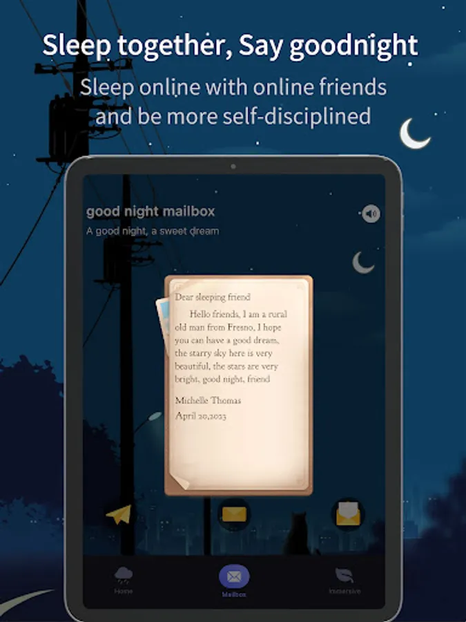 You are not the only one to face issues at night. It is not uncommon to find it hard to fall asleep or to wake up various times during the night.When you can't sleep,You can even open the good night greeting letter from other corners of the world at any time, to warm you and accompany you to sleep.