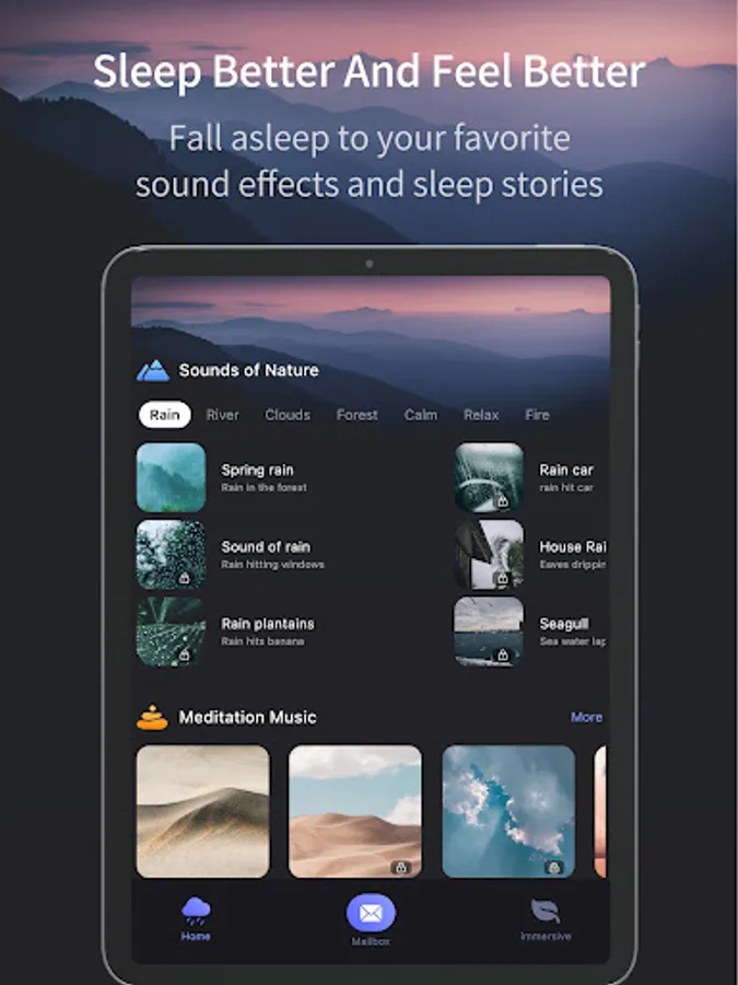 Fall asleep easily, sleep soundly, and develop lasting sleep habits, with dreamy soundscapes, narrated sleep stories, hypnosis and meditations that really work, all perfectly tuned to your needs.