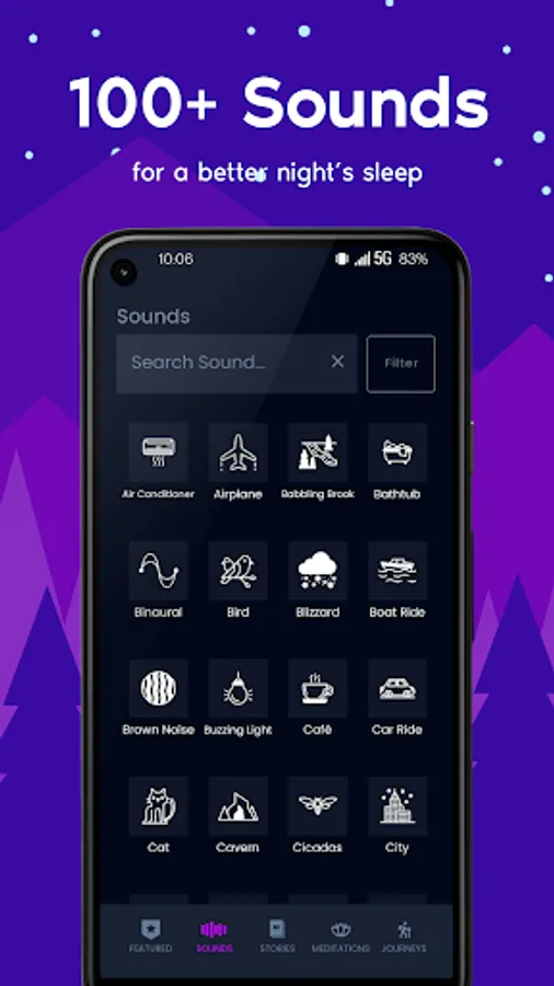 Sleep Jar offers over 200 sleep sounds, stories, journeys, and guided meditations to help promote better sleep, relaxation, focus, or to drown out distracting noises.