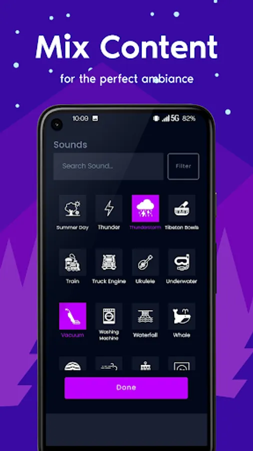 Our sounds are professionally recorded and carefully reviewed to ensure they are free from distractions. Supported sounds include: