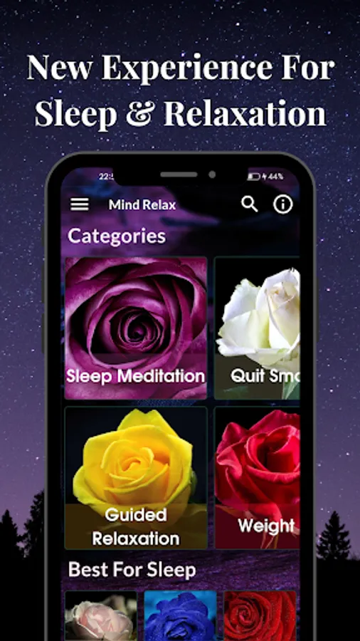 Our mindfulness app gives you more than 70 self help meditations to help you focus, relax your mind, calm yourself, relieve stress and fall asleepat night. All guided meditation includes;
