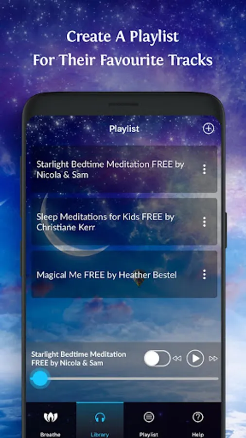 The app has meditations and mindfulness tracks for children of all ages and covers a range of themes to help your kids to sleep soundly at night. The topics include sleep, bedtime, mindfulness, general confidence, anxiety, stress, self esteem and more. The meditations can help kids with feeling of confidence and motivation at school, with peer pressure and fitting in with friends and to generally feel happier and more positive. The variety of styles and themes in this kids app make it the must have children's meditation app for all situations. We will be adding more high quality tracks covering specific themes often.