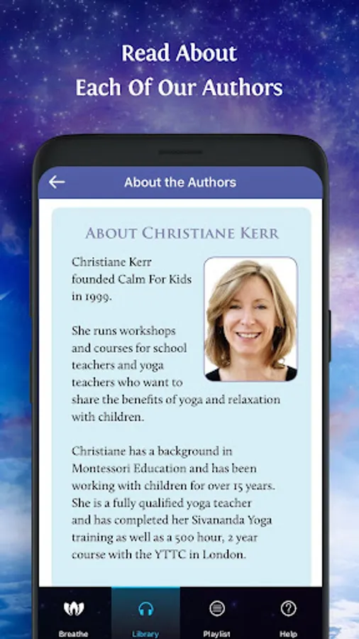 It features a number of children's bedtime meditation stories by best selling children's audio authors Nicola Harrold & Sam Redgrave from Aluna Moon, Christiane Kerr, Glenn Harrold, Lynda Hudson, Dr Elizabeth Scott, Heather Bestel and Jan Yoxall.