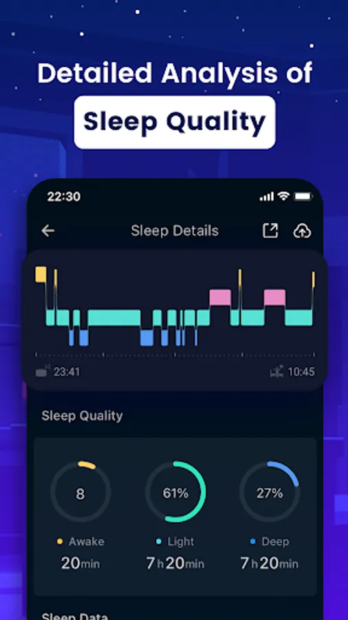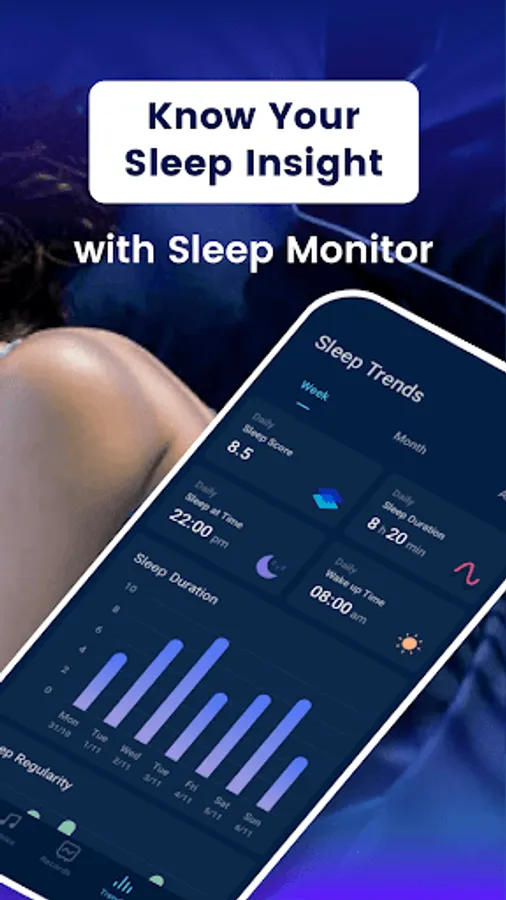 Improve sleep quality and develop better sleep habits with weekly and monthly data statistics.