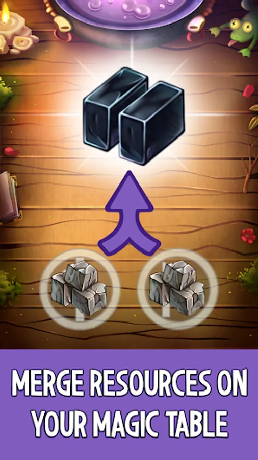 Get rare items from epic ghosts. Use your magic table to gather resources and merge them to get better ones. Brew boosters to make your hero stronger or enchant your legendary equipment.