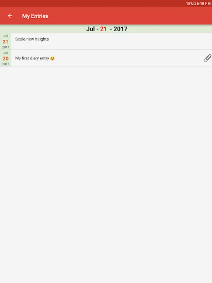 Diary is a simple application which lets you write daily thoughts/ideas/memories with a simple user interface. Add a visual touch to your memories attaching a photo.