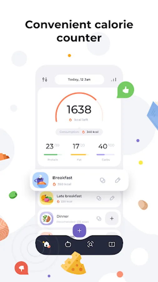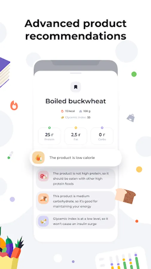 - Analyze foods and check their compliance with your meal plan and your goal;