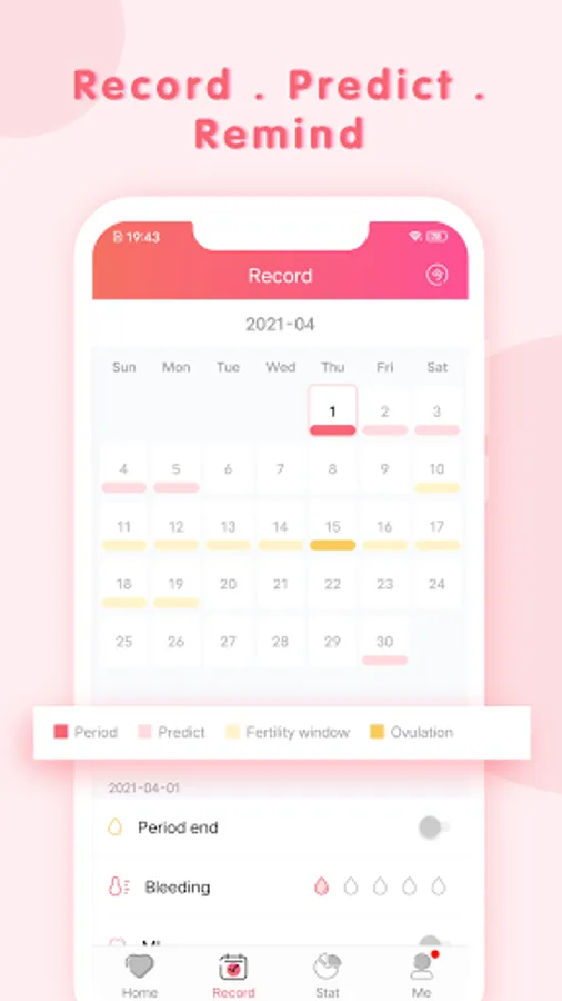 * Records include bleeding volume, 22 common menstrual symptoms, and private records