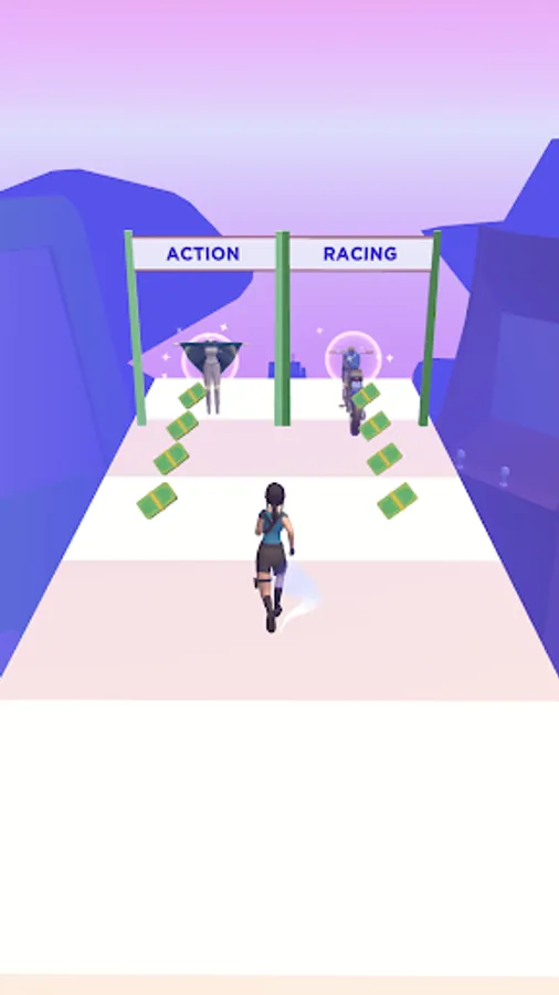 For example: The action gates lead to a Glider chase Dodging Bazookas!