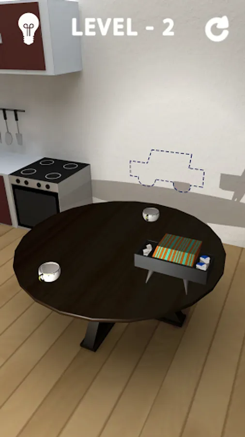Adjust the objects by moving them to their position to form the targeted shadow. Make sure that the objects don't collide with each other it may reset the level. After achieving the targeted shadow you can see the shadows getting into life and moving around.