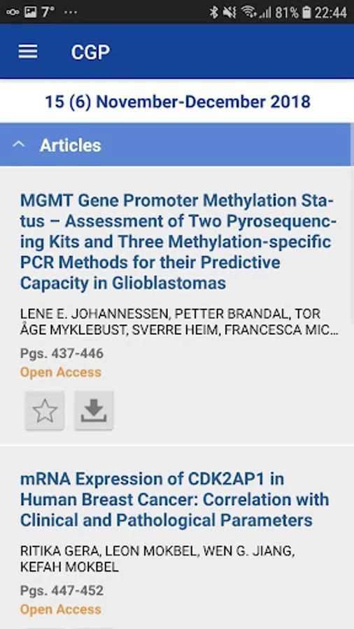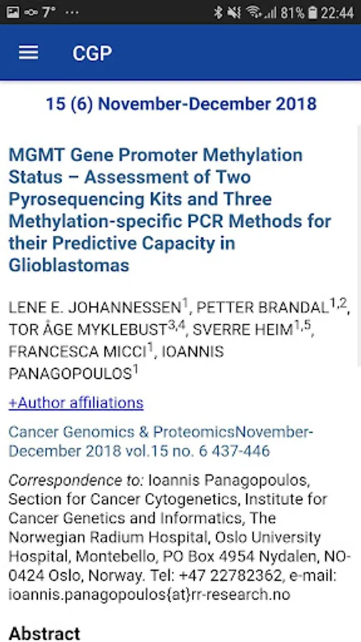 Cancer Genomics & Proteomics (CGP) is an international open access bimonthly journal designed to publish rapidly high quality articles and reviews on the application of genomic and proteomic technology to basic, experimental and clinical cancer research. In this site you may find information concerning the editorial board, editorial policy, issue contents, submission of manuscripts. The first issue of CGP circulated in January 2004.