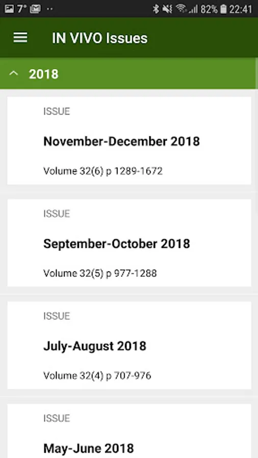 IN VIVO is published bimonthly online-only and open access from January 2017. Each annual volume contains six issues and index.