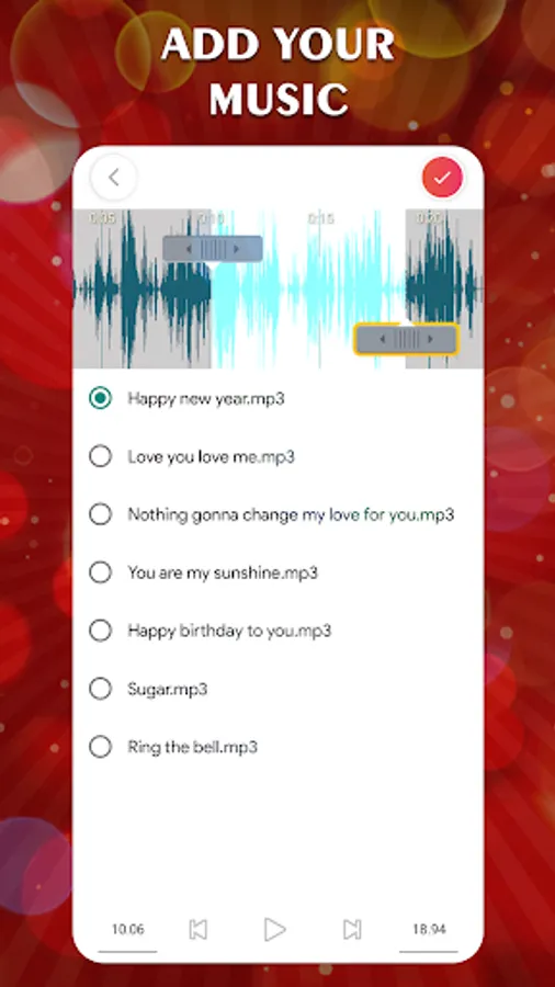 - Music: The app provides melodies that match every video theme. You can also add your favorite songs and music tracks from the device to make your videos interesting and engaging.