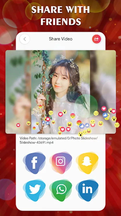 - You can get the rain of likes and hearts from your social network of friends, relatives and lovers when sharing videos created from Video Maker. Download the app, publish the video and share it now