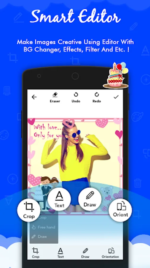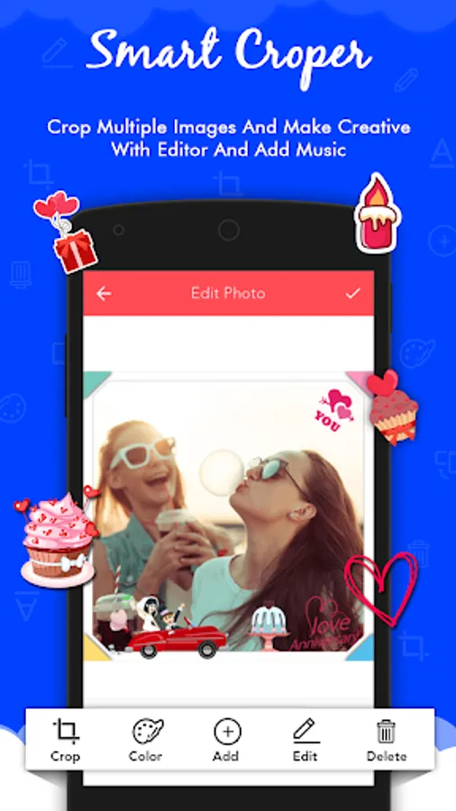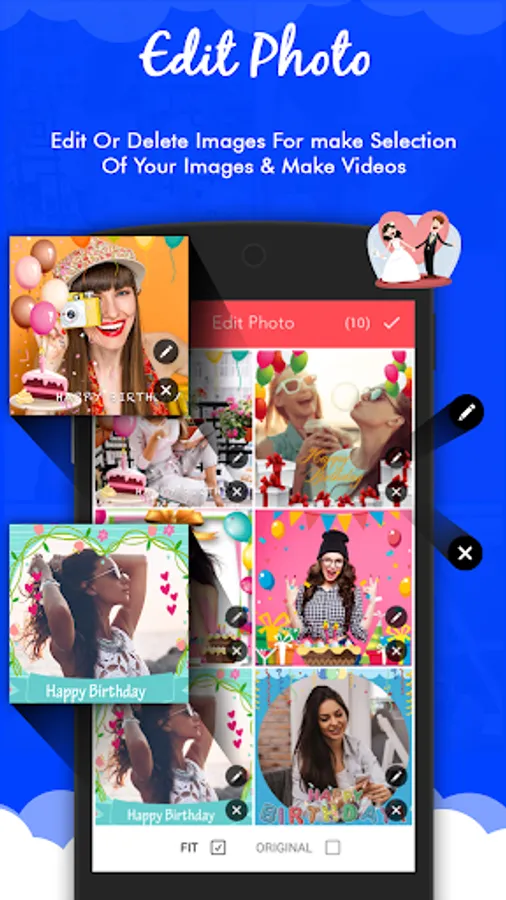 You are free to edit photos with editing tools available in app Anniversary Movie Maker. Share Anniversary movie