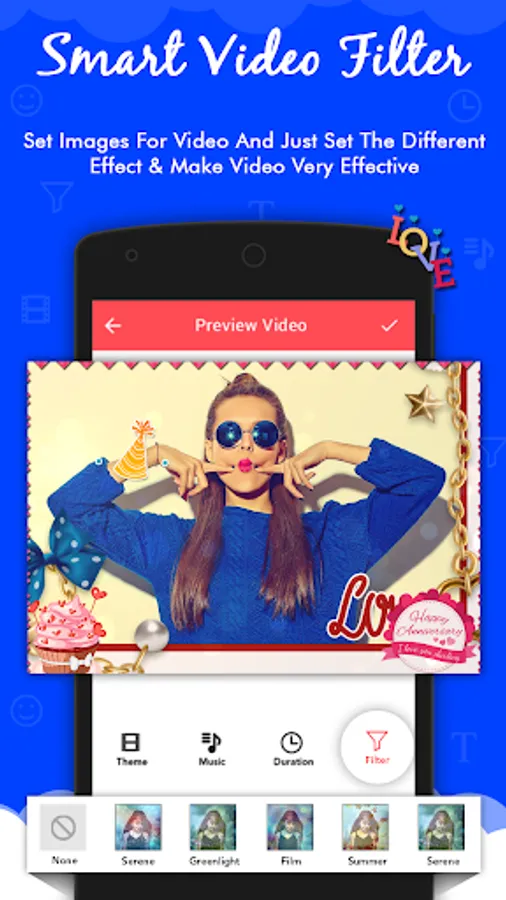 * You can having facility of Filtering of photos in Anniversary Movie Maker.
