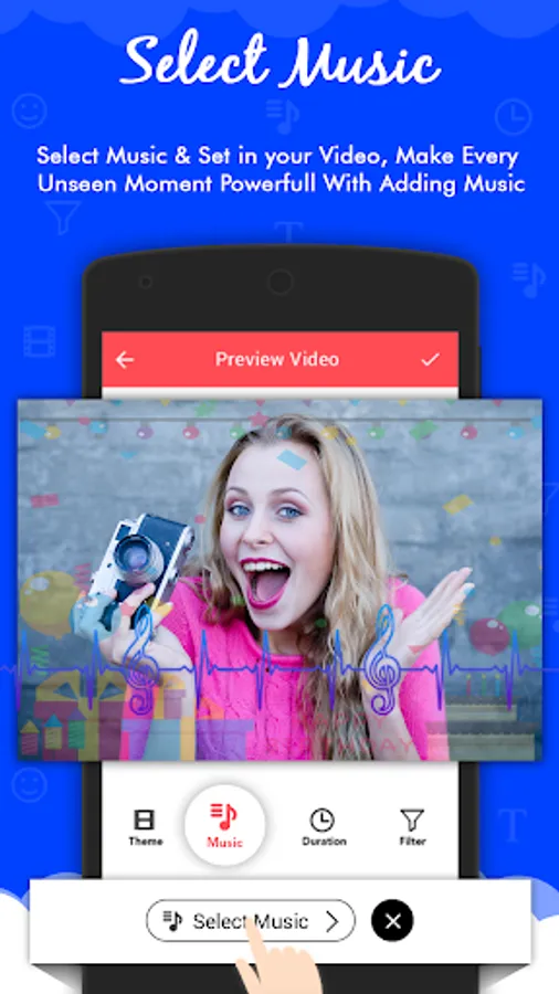 * You have to add Music Facility from your music album whatever song you like to add in your Video Creation.