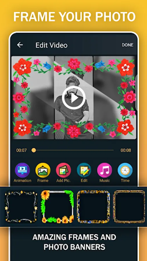 - Easy to create a photos slideshow. Pick your photos from mobile phone then add a music file. You will have a good video.