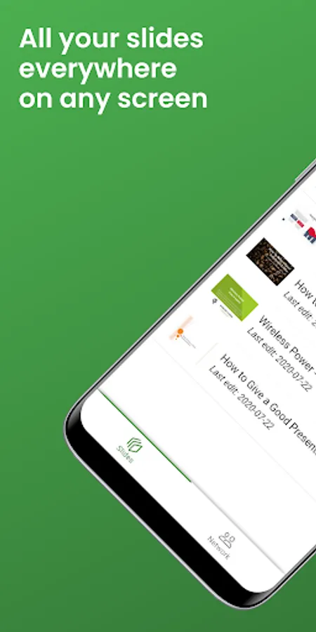 - Start your slides on any connected screen in the world, you only need your smartphone