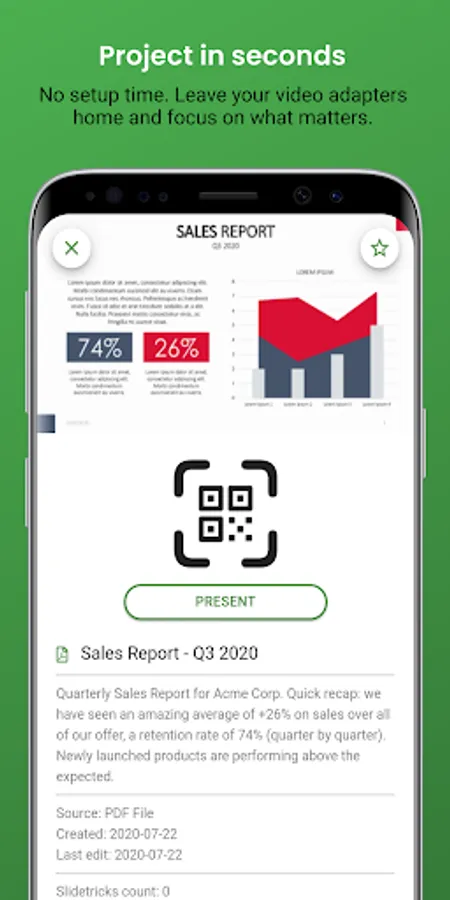- Forget video adapters and USB sticks, just scan a QR code and present your next project on the big screen