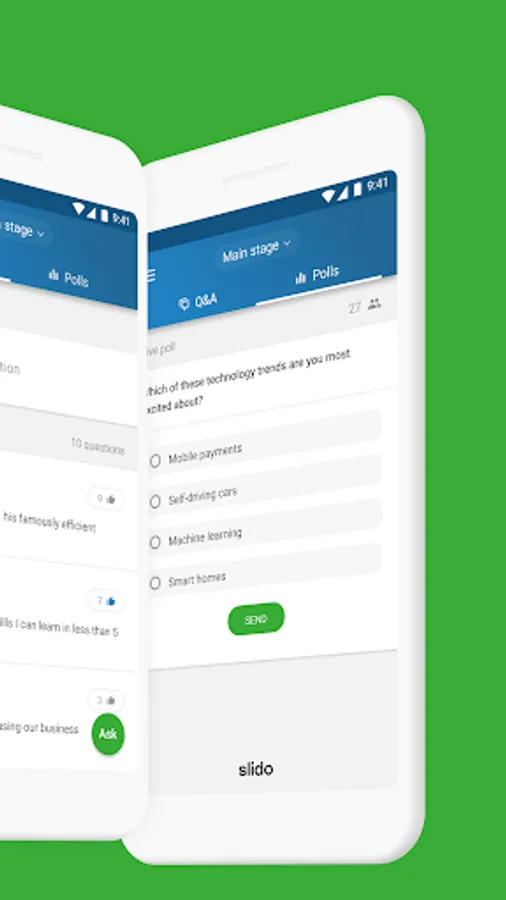 Ask questions, vote in polls and be a part of the conversation at the event you’re attending. Download the Slido app and join your event by simply typing in the event code.