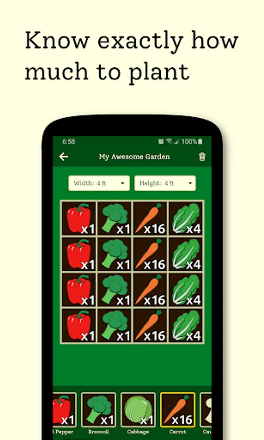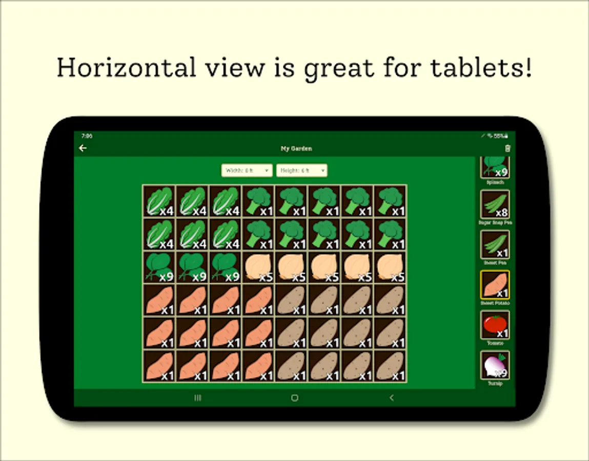 -Simply choose a vegetable from the scrolling menu and tap where you would like to plant it in the garden grid.