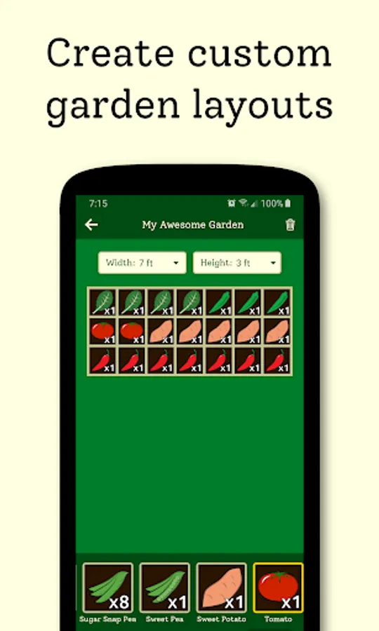 -Create custom garden layouts of any size up to 10x10 square feet.