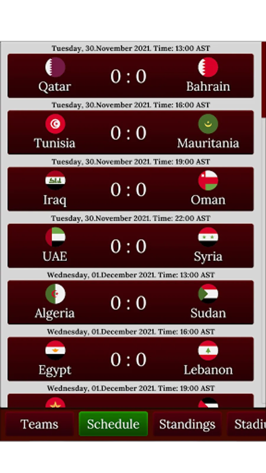 Arabian Cup 2021 contains all the information about the Arabian Cup being help at Qatar. Information about the teams playing in Arabian Cup is present. Schedule of all the matches which are to be played with their date and time. Get information about the stadiums in which the matches are going to be played