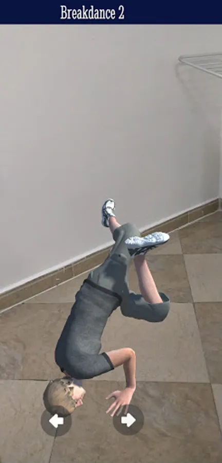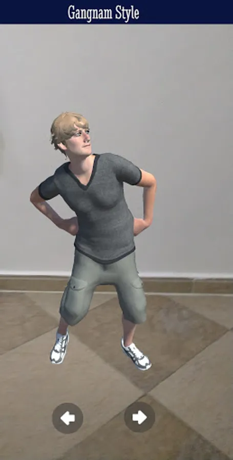 Instruction to Use: Allow the use of camera. Point the phone towards the ground (flat surface) and move the phone around. Once the pointer starts indicating, tap to place the character. Use the arrow keys to change to different dance moves.