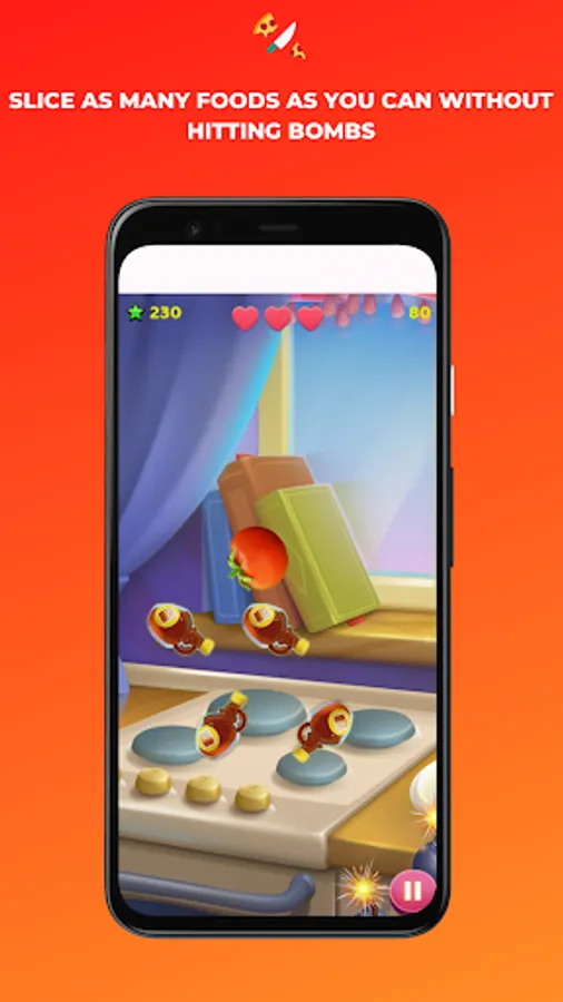 In this food game, your only objective is to chop up as much food as possible without hitting a bomb. If you do, you lose!