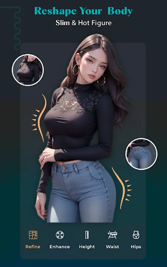 Accentuate your body features with our amazing Body Editor & Photo Editor and make your pictures more beautiful and fun!
