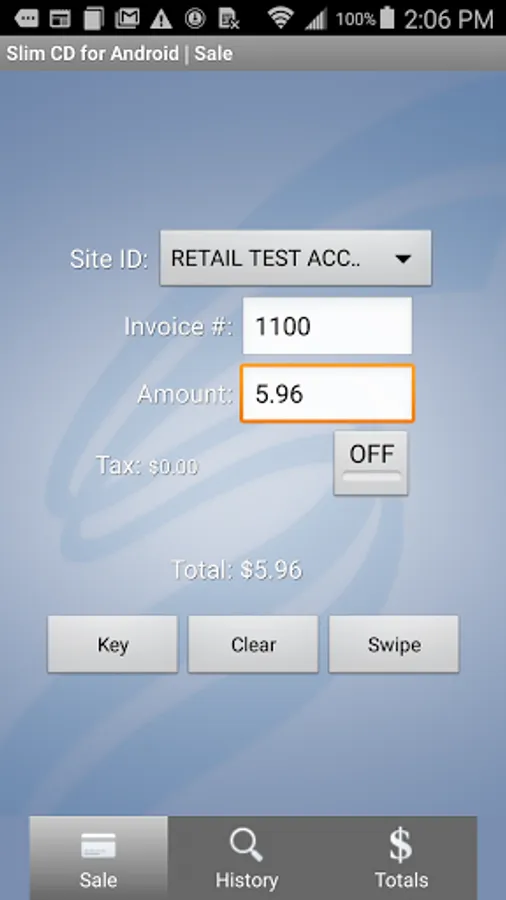 Both keyed and swiped transactions use the SlimCD payment gateway for authorization. All transactions are conducted using either a 3G or WIFI connection using Secure Sockets Layer (SSL) communications.