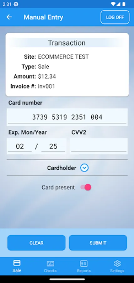 The application works with Ingenico and IDTech readers that can be connected using WiFi, Bluetooth or Audio Jack (Limited to selected phones). Beside that, it also allows a manual keyed transaction entry.