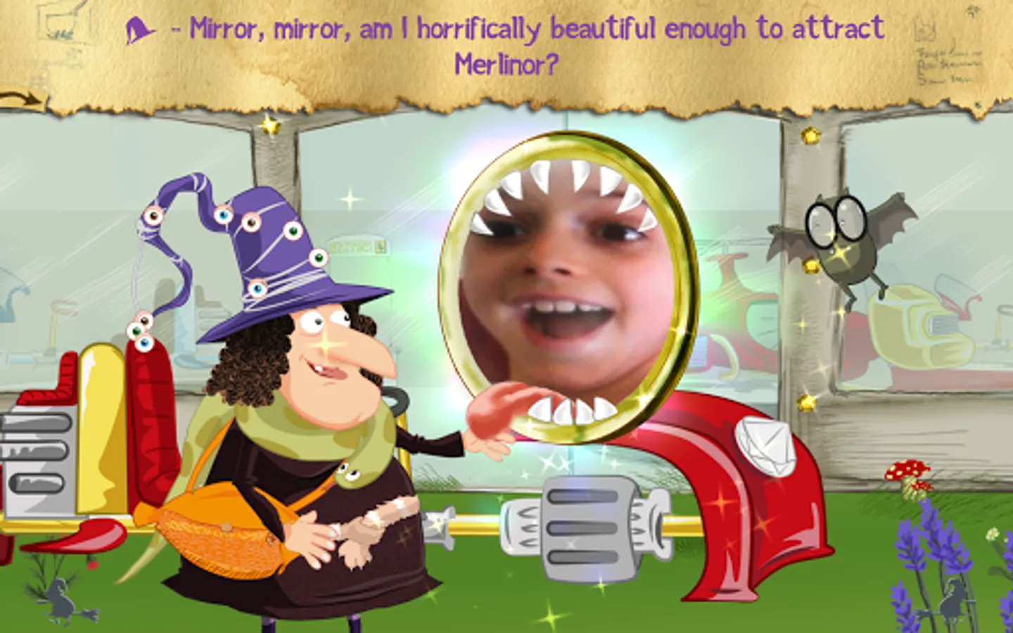 The witch thinks she’s in love with the handsome and famous sorcerer Merlinor. She dreams of being invited to the big party that he throws every year for Halloween. Despite the advice of her faithful bat-friend, Batina, she decides to do everything she can to charm Merlinor: change her appearance, swap her old broomstick for a deluxe model and even learn good manners.