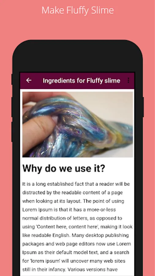 How to make a fluffy slime Beginners application in which there are many recipes for how to make slime at home and how to make fluffy slime. All slime recipes are simple and straightforward to prepare.