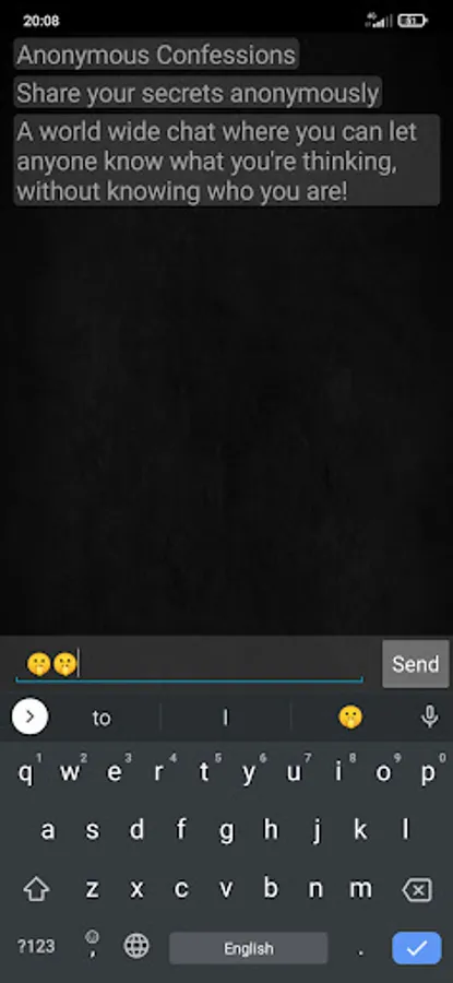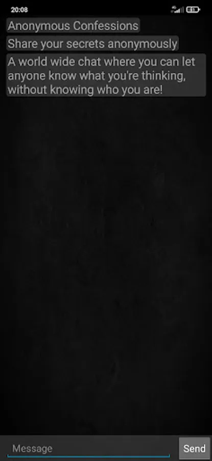 A world-wide chat, where you can let anyone know what you're thinking, without knowing who you are! Share your thoughts with everyone and hear them out.