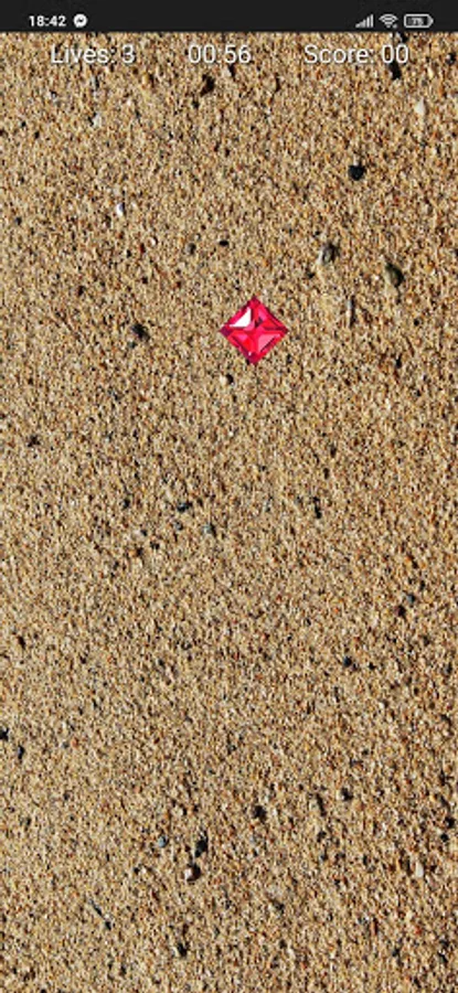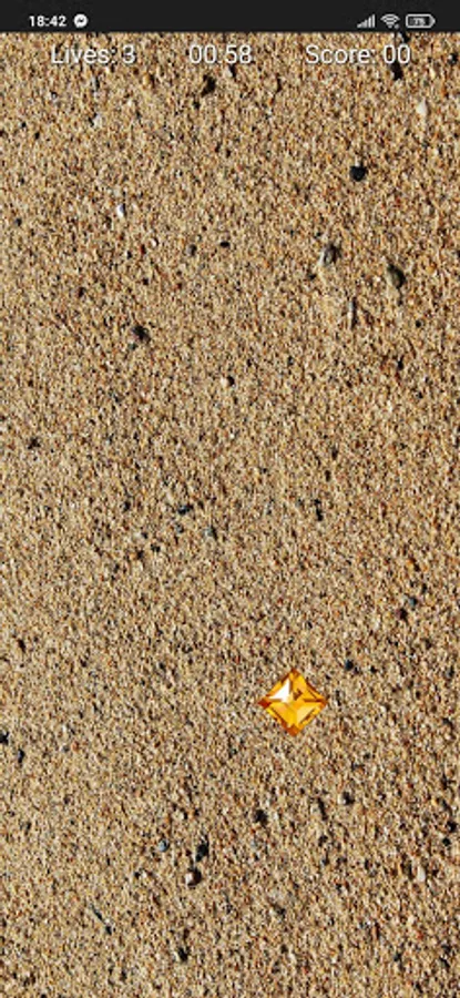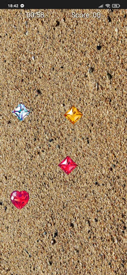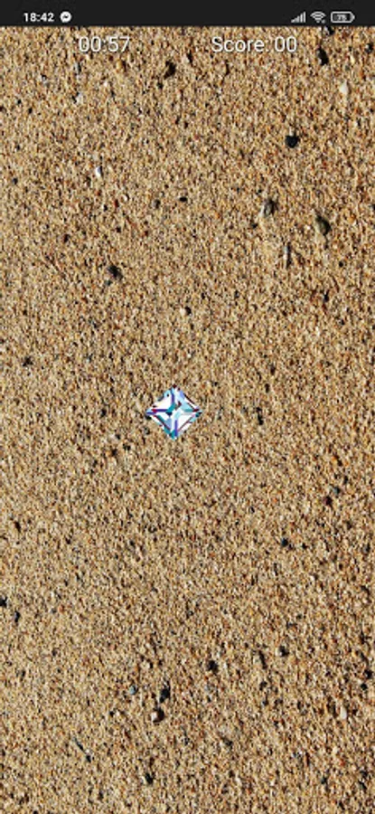Having beach sand as a background, diamonds of various colours appear on the screen. Tapping on them means popping them, making a breaking glass sound and vibrating slightly. But time is of the essence, as the diamonds come and go, so one has to be fast!
