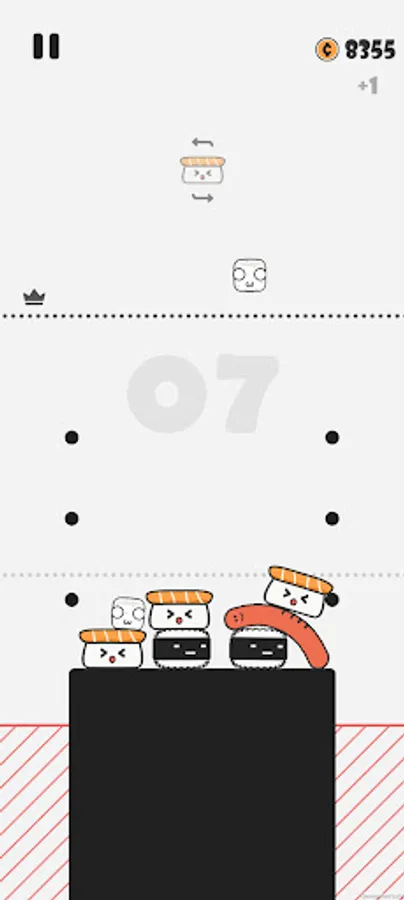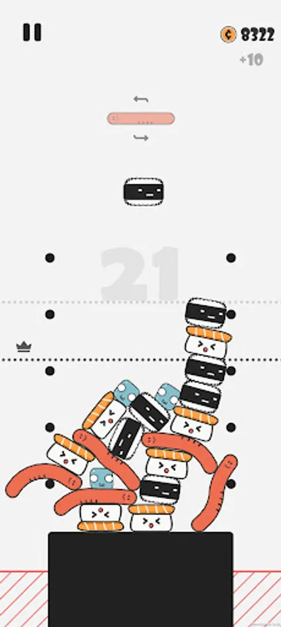 🎯 The main objective is to stack the highest tower of kawaii sushis and slimy foods without dropping any outside the platform.