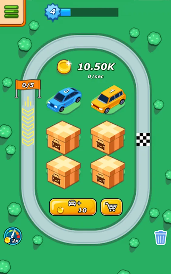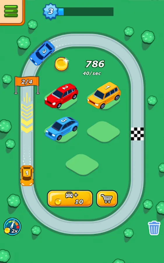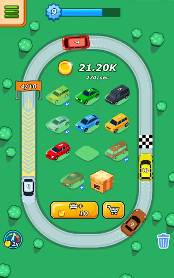 Merge Cars is a app where cars drive around a closed ring road. You need to merge and then manage your cars on the field. Buy some of them in the shop if you have enough money. You have race track and car park. Vehicles are different, some of them has racing style.