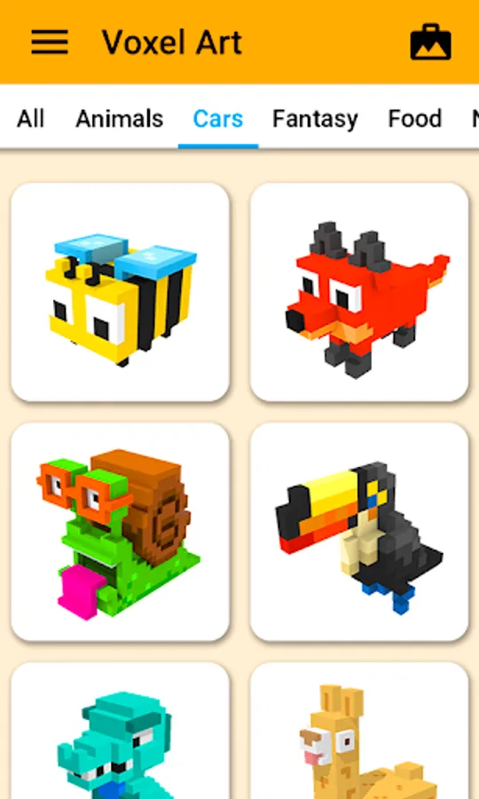 First choose the picture you like and start drawing it. Select color by number and draw on the cubes of the model. Try to make different voxel 3d drawings.