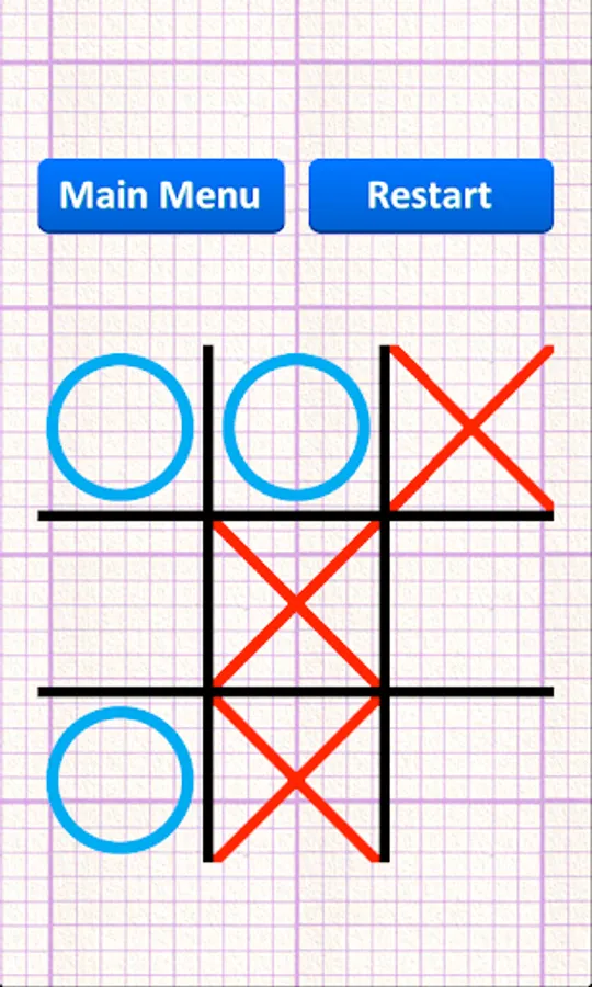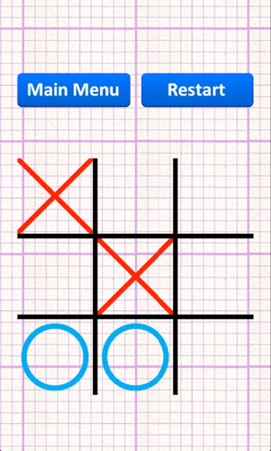 - Game has simple design - blue cross, red zero.