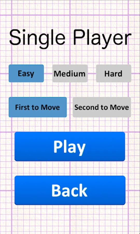 - Tic Tac Toe Game has 3 difficulty levels: easy, medium and hard.