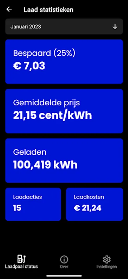 If you are in possession of a dynamic energy contract (variable electricity prices per hour) and a charging station that can make a so-called back office connection (ocpp connection), you can save a lot of money with this app after registering on our website by smart charging. If you do not have a dynamic energy contract, but do have an energy contract with an off-peak/normal rate, you can also save. If you have a contract with 1 rate, you still have a nice management system for your charging station with extensive reporting and VAT breakdown.