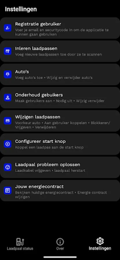 You can create cars and users in the app. For example, family members who also have an electric car. You can also manage charge cards and assign them to users. You can also instruct the charge point to "learn" new charge cards.