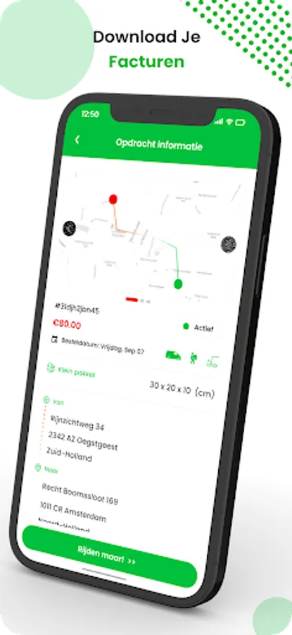 At Pakket2Go you decide how much you work. In this app you can see the available packages that you can pick up throughout the country. You can also immediately see what you can earn per assignment. The first courier who accepts this order gets to drive it.