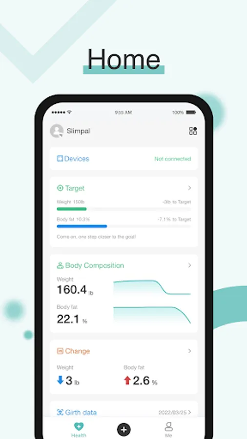 Slimpal is an application for improving your health. This app can help you connect Slimpal Smart Scale to measure and record weight, including: