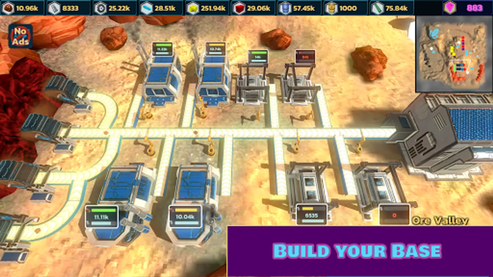 • Build drone hangars and send your drones to collect distant resources.