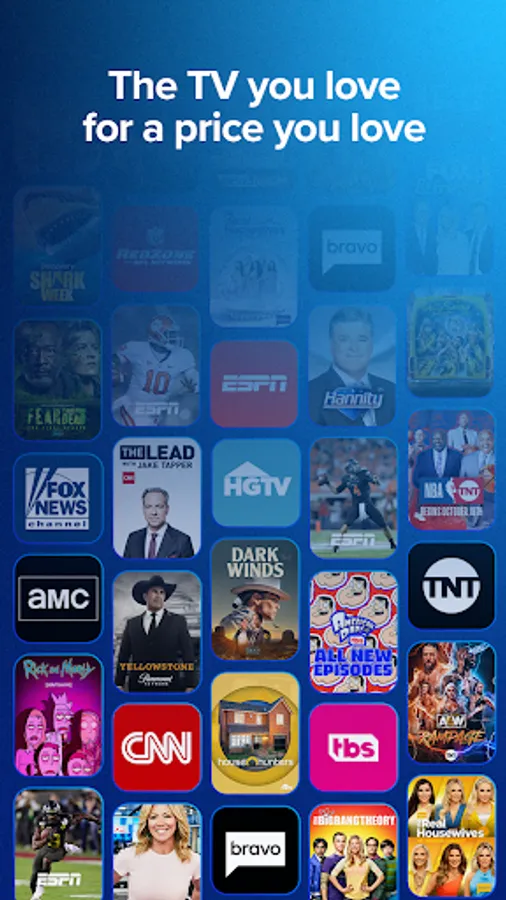 Stream today’s most popular shows and movies live and On Demand. Sign up and start watching channels like Bravo, Freeform, Investigation Discovery, TBS, TNT and so much more. Customize your channel lineup with premium streaming services like STARZ, AMC+, SHOWTIME, MGM+, Discovery+ and Hallmark Movies Now.
