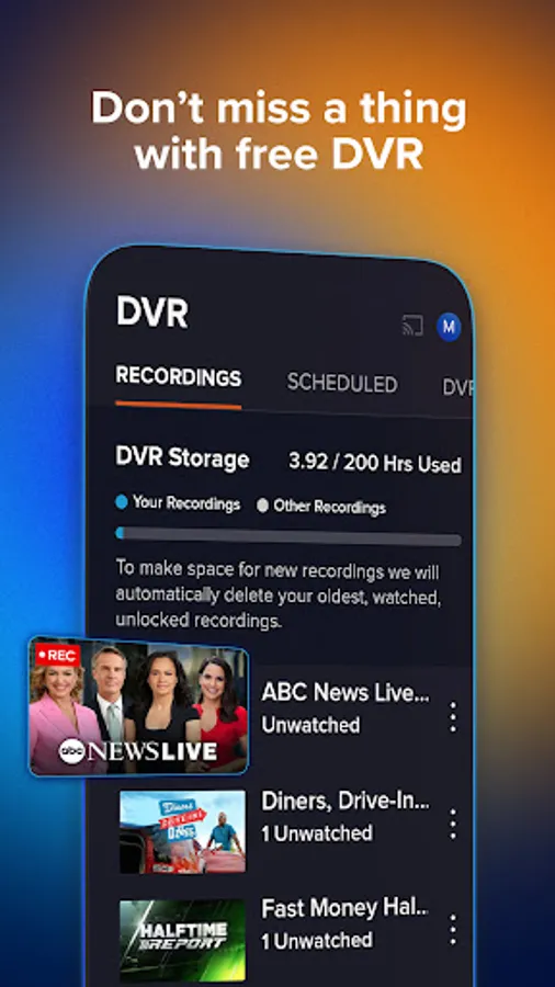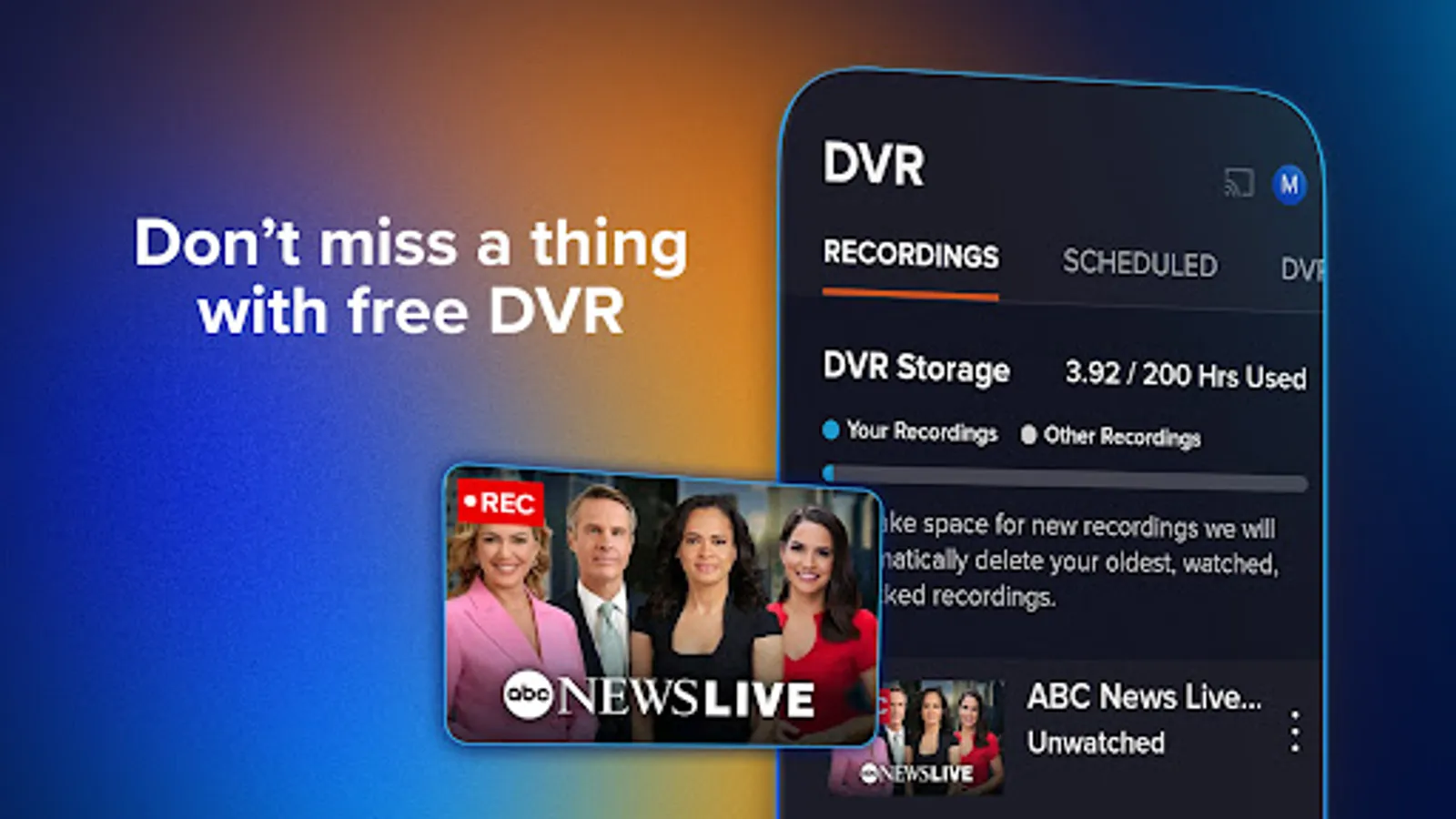 You’ll automatically receive 50 hours of DVR storage with your Sling subscription! If that’s not enough, you can upgrade to DVR Plus and record up to 200 hours of storage. Record your must-watch sports, news and shows, then, watch them on your schedule.