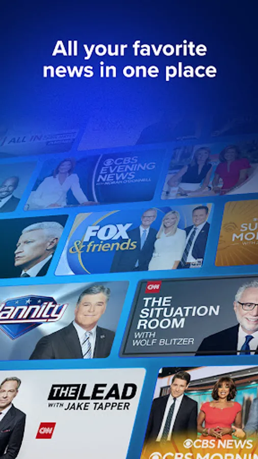 Sling keeps you up to date on breaking news with channels like CNN, MSNBC, FOX, and Bloomberg, plus free channels like ABC News Live. Get the latest news headlines in the U.S and around the world. Add the News Extra package to get breaking news from trusted national networks, financial and economic news and diverse news channels.